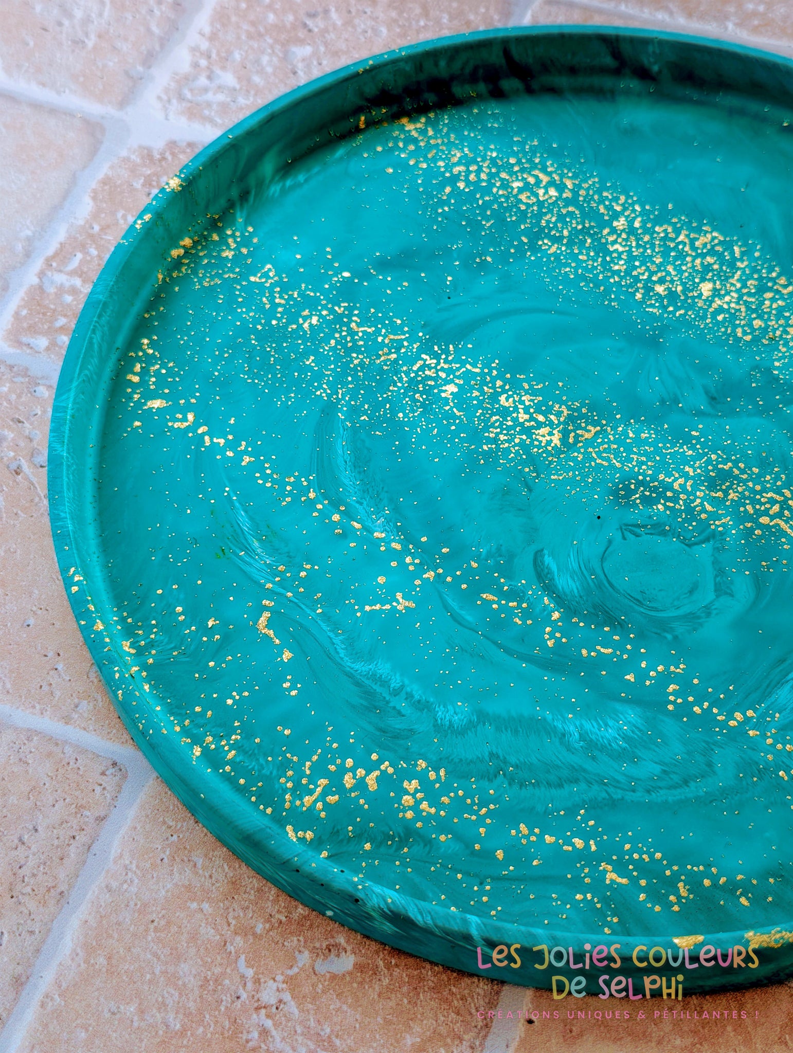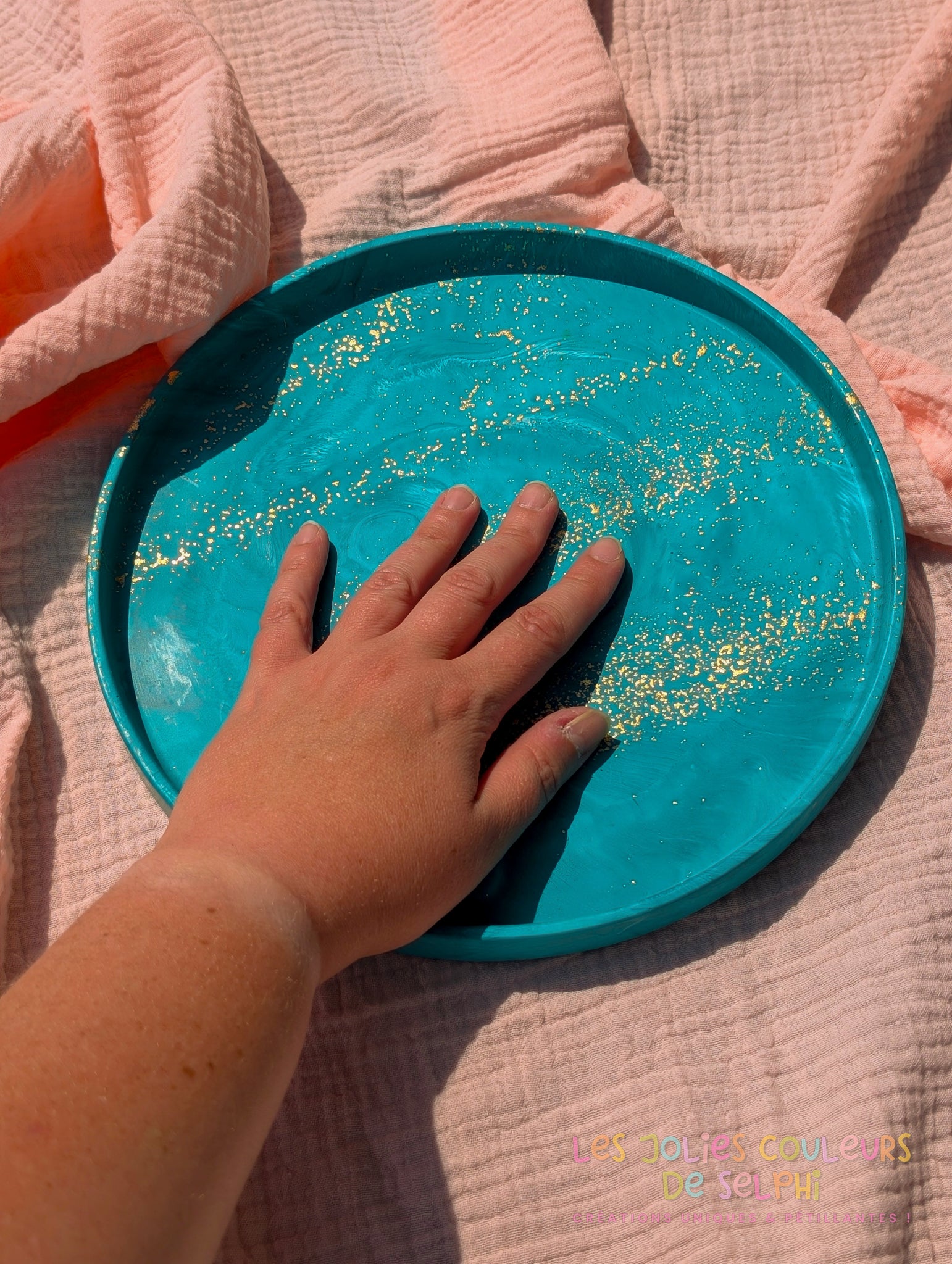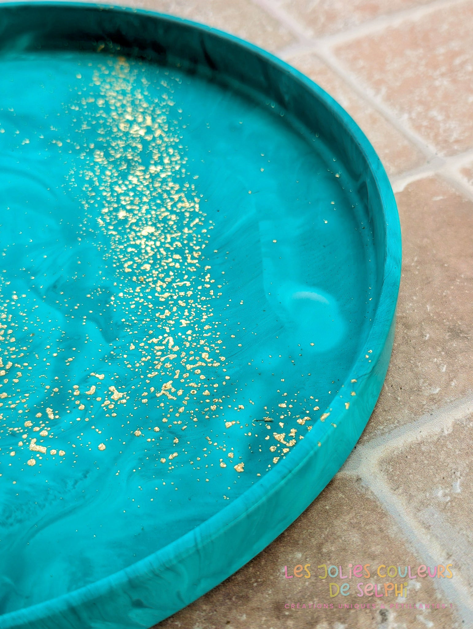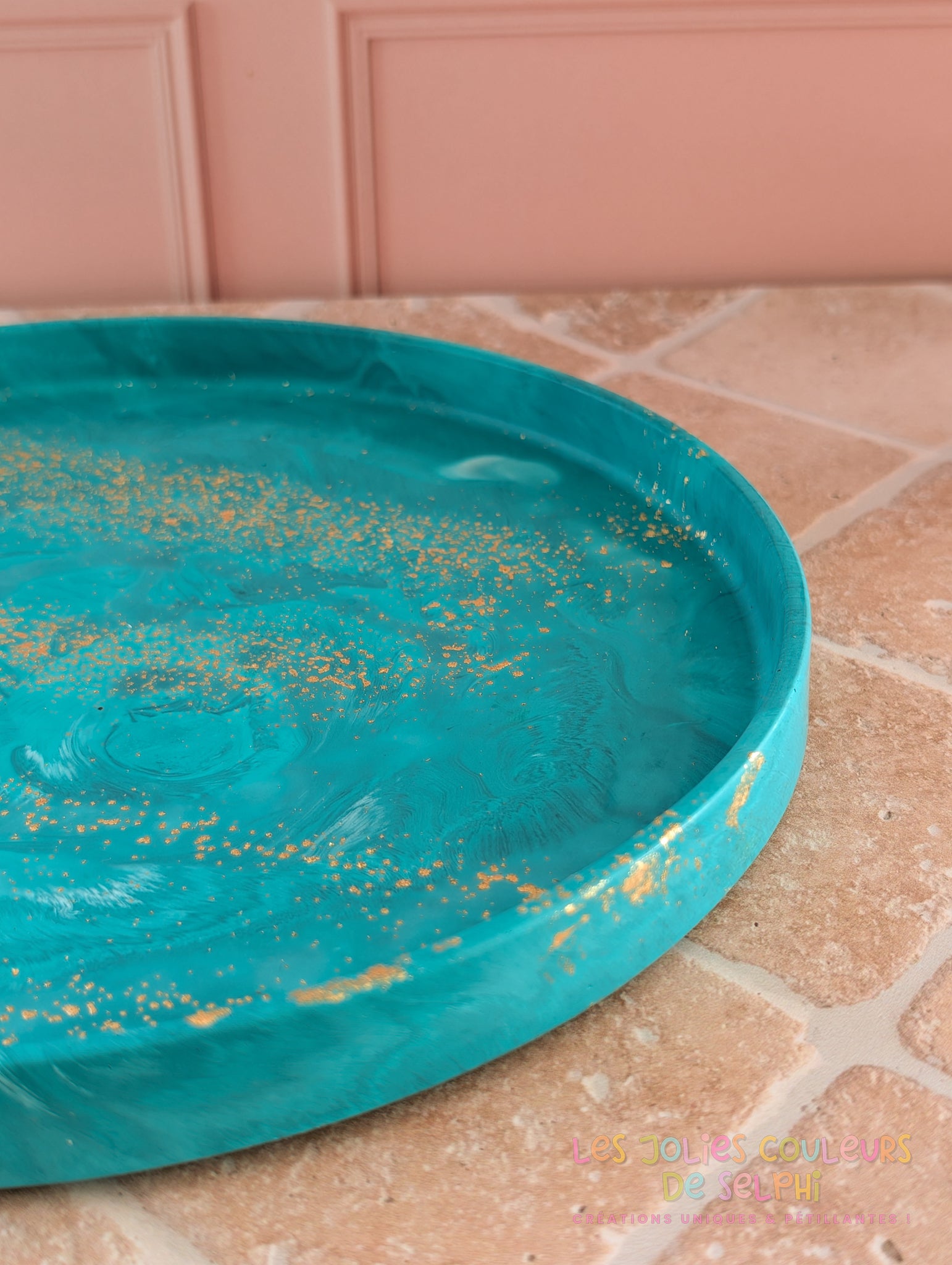 Grand plateau vide-poches en Jesmonite - bleu turquoise marbré et doré
